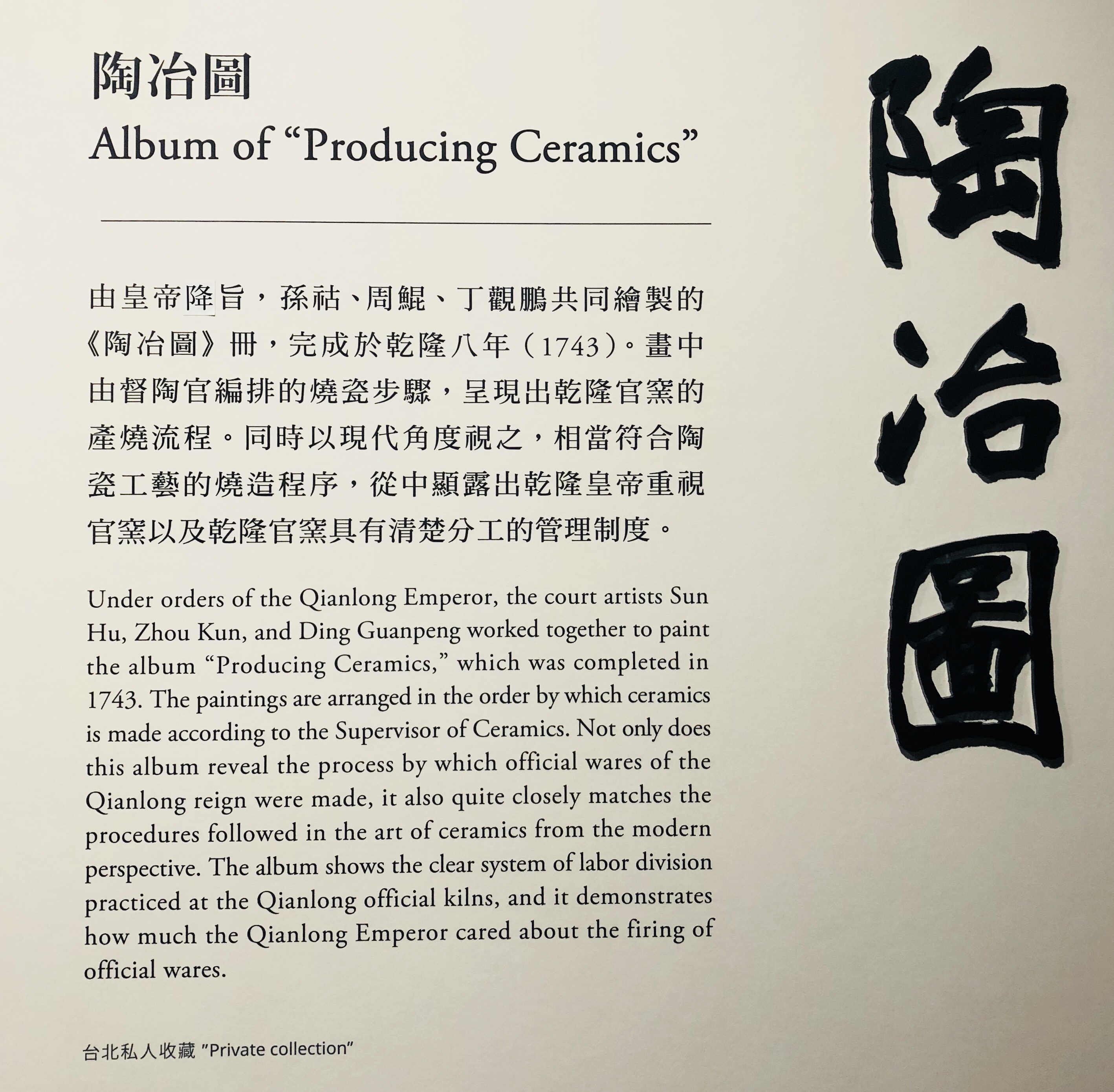 While inspecting the gallery, I saw a series of painting depicting the process of producing Ceramics! It is a tedious task, no wonder the end result is close to perfection if not flawless. I am not gonna describe the processes as illustrated by an imperial court artist Sun Hu and his colleagues. Take a look by yourself.