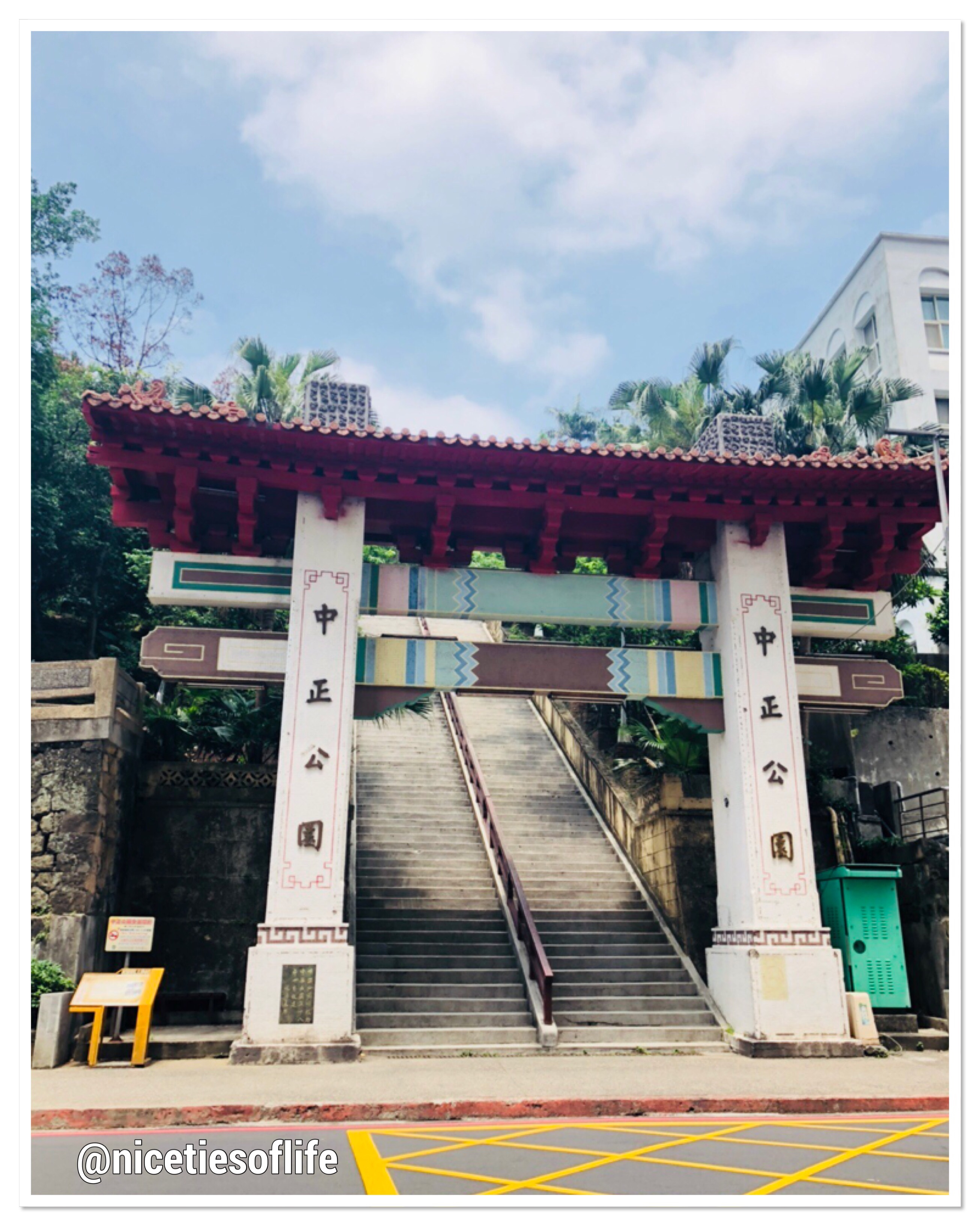 At the base of the park facing Shoushan Road.. yep there are countless staircases