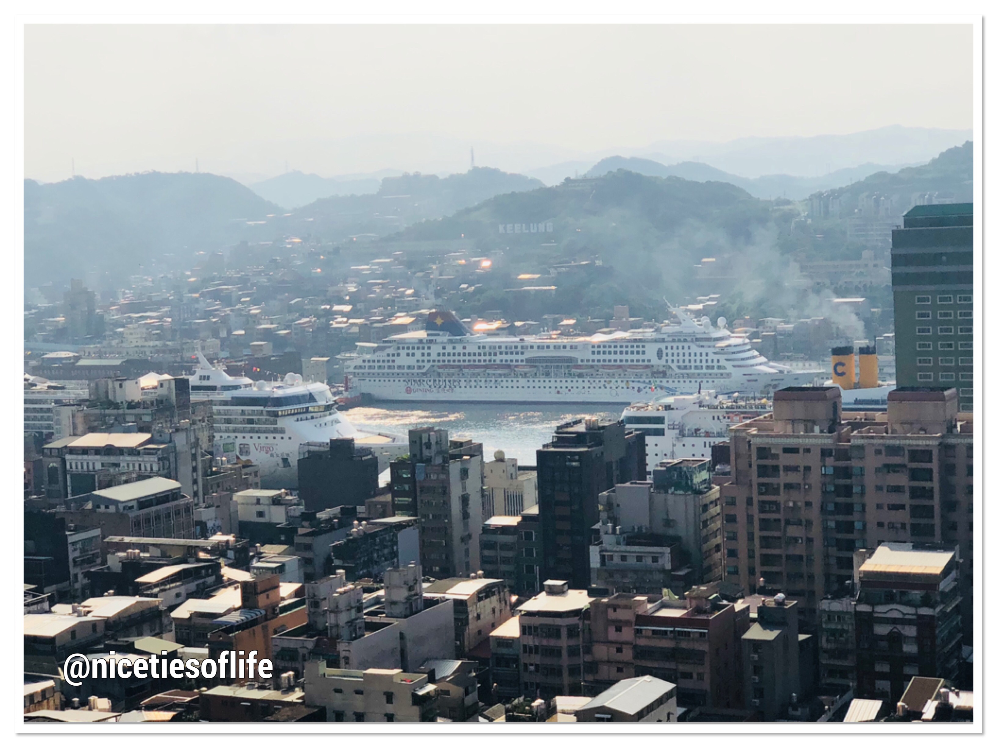 Overlooking Keelung City, can you spot the Cruise ship?