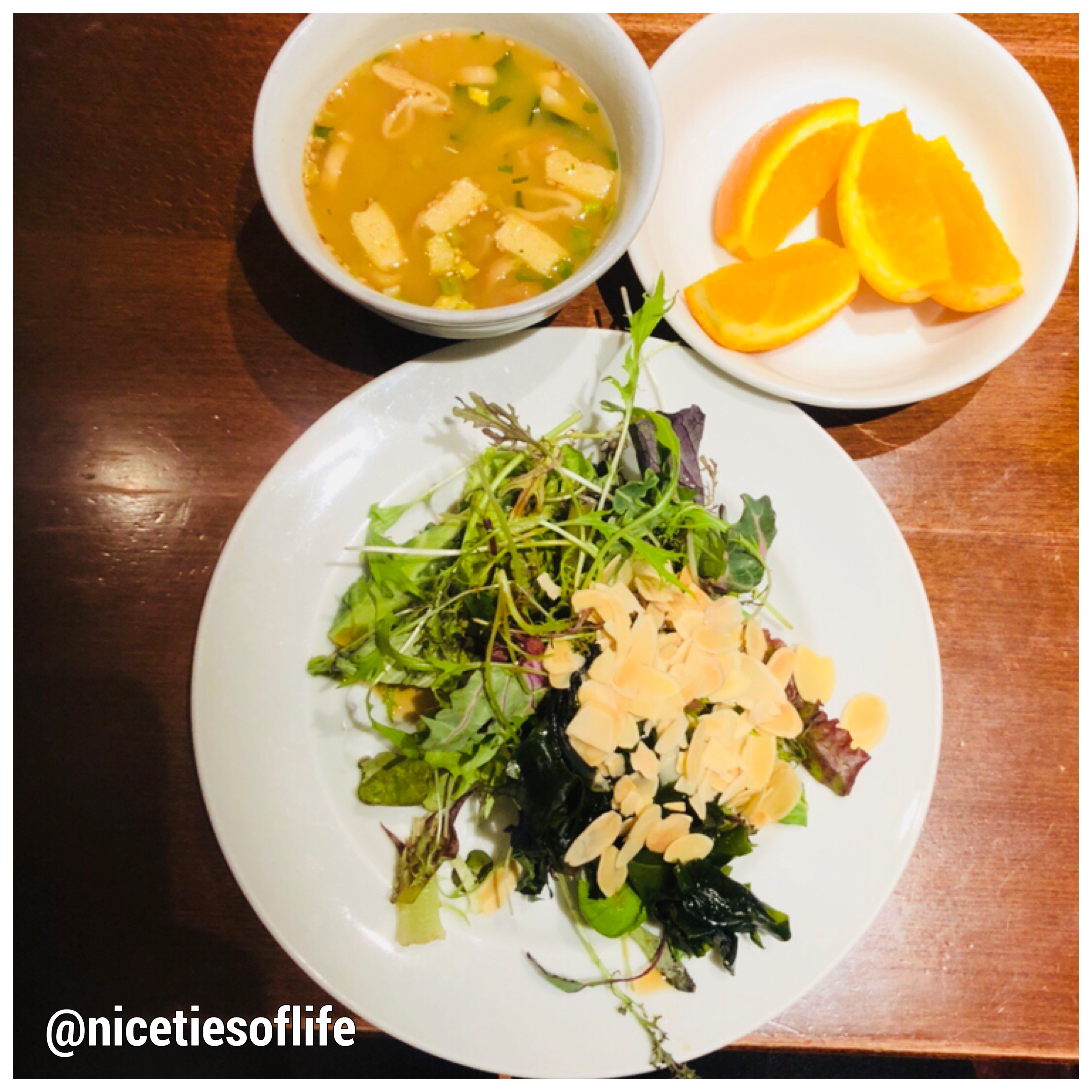 Breakfast at the hotel, vegetable salad with almonds and my fave Miso Soup… what I love about the soup is that I create my own….so i get to choose what pickled stuff to add… yum yum