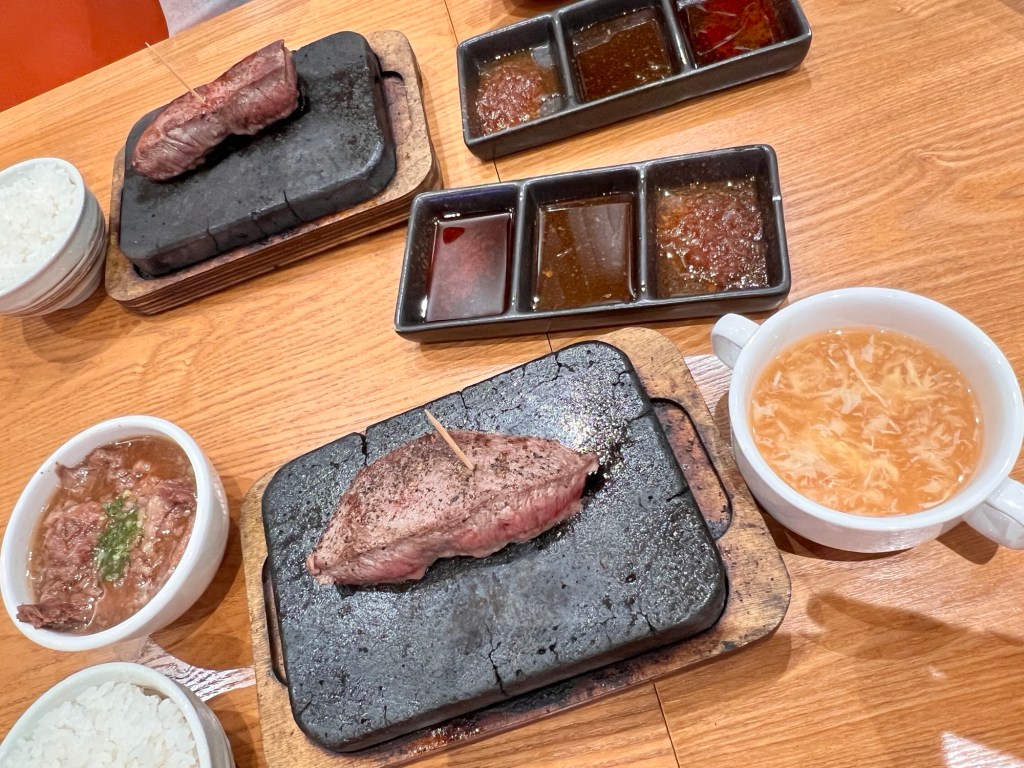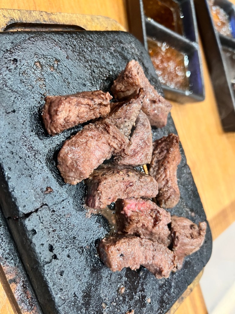 Food: ⭐️⭐️⭐️⭐️ the steak is served by grammage (so you only order what you can consume). I ordered 100g first because I’m not sure if I will like it or not. It was serve in a hot stone grill- which is great because you can have your steak the way you want it as they promise. You can have it rare to well done depending on your preference. The hot grill is so hot that it you can have your steak well done!