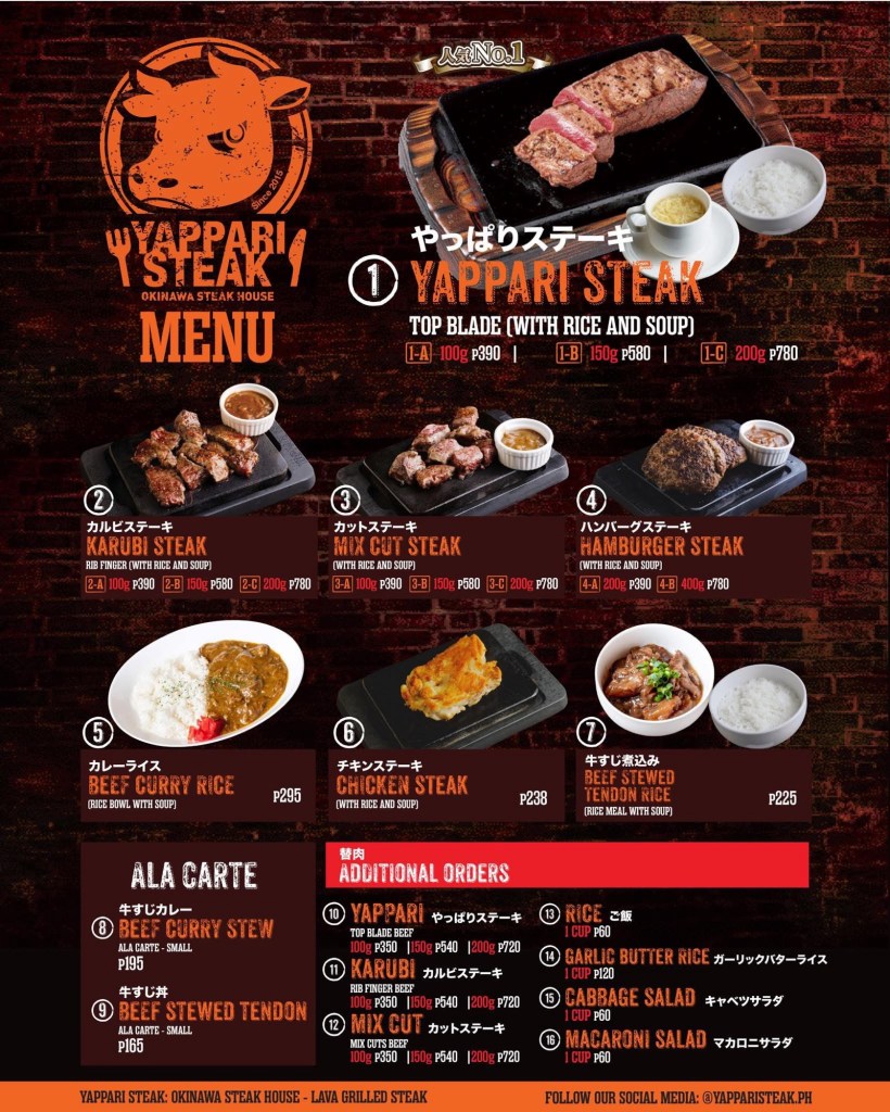 I was so curious about Yappari Steak an Okinawa Japan based steak house that opened in Mall of Asia, that serves only steak and some beef cuisine.